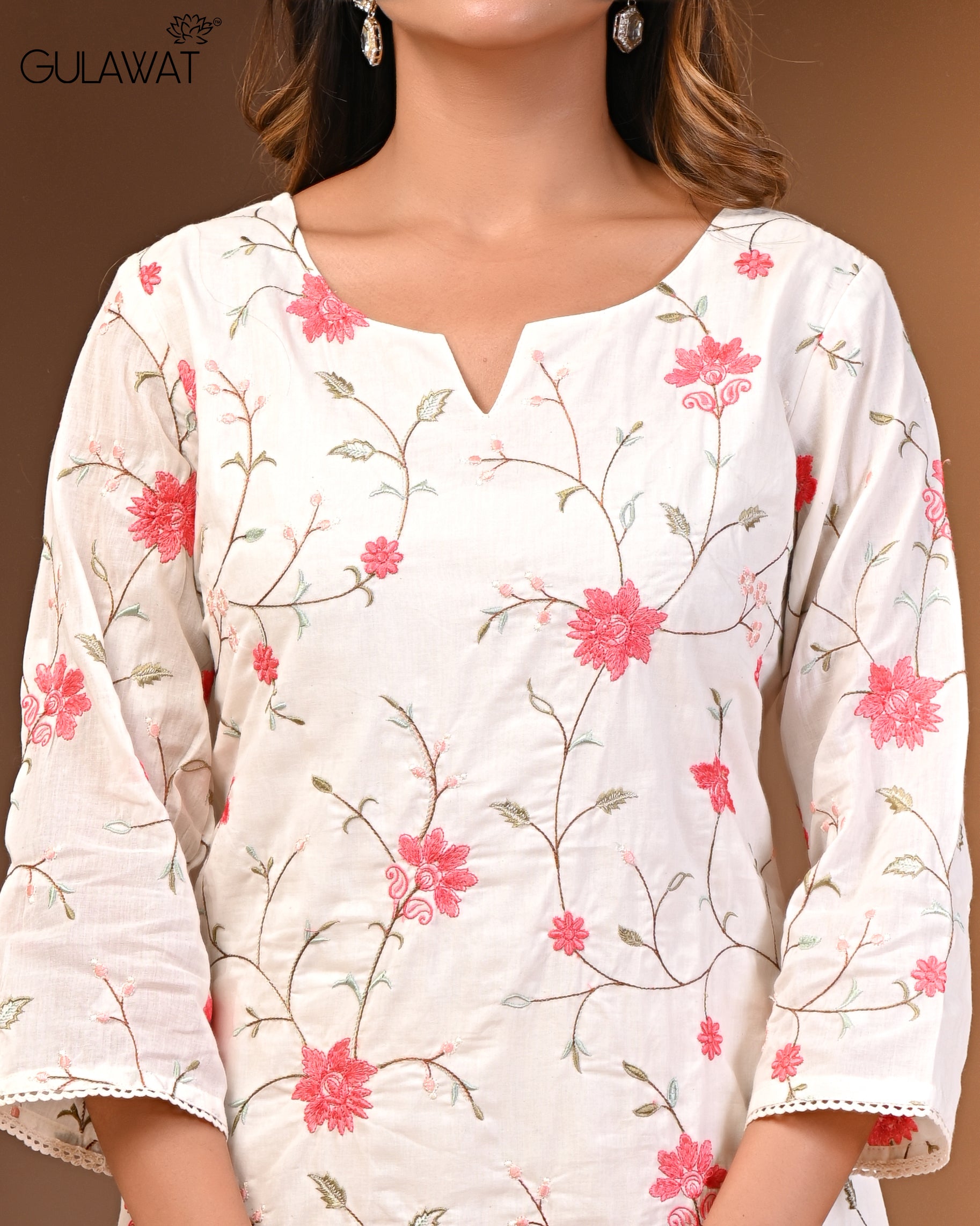 Gulawat Premium Pure Cotton White Kurta with Women's 3 piece set