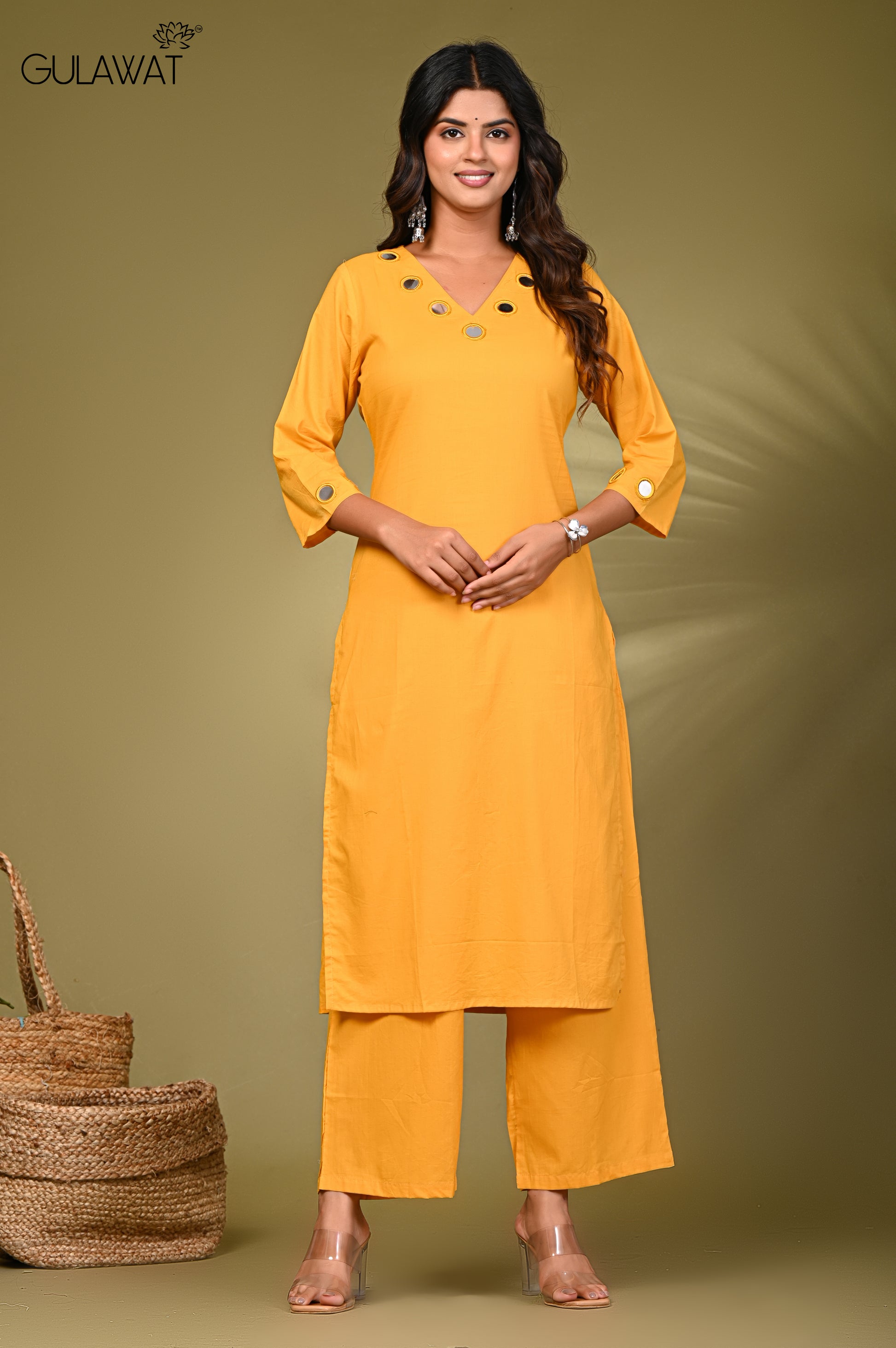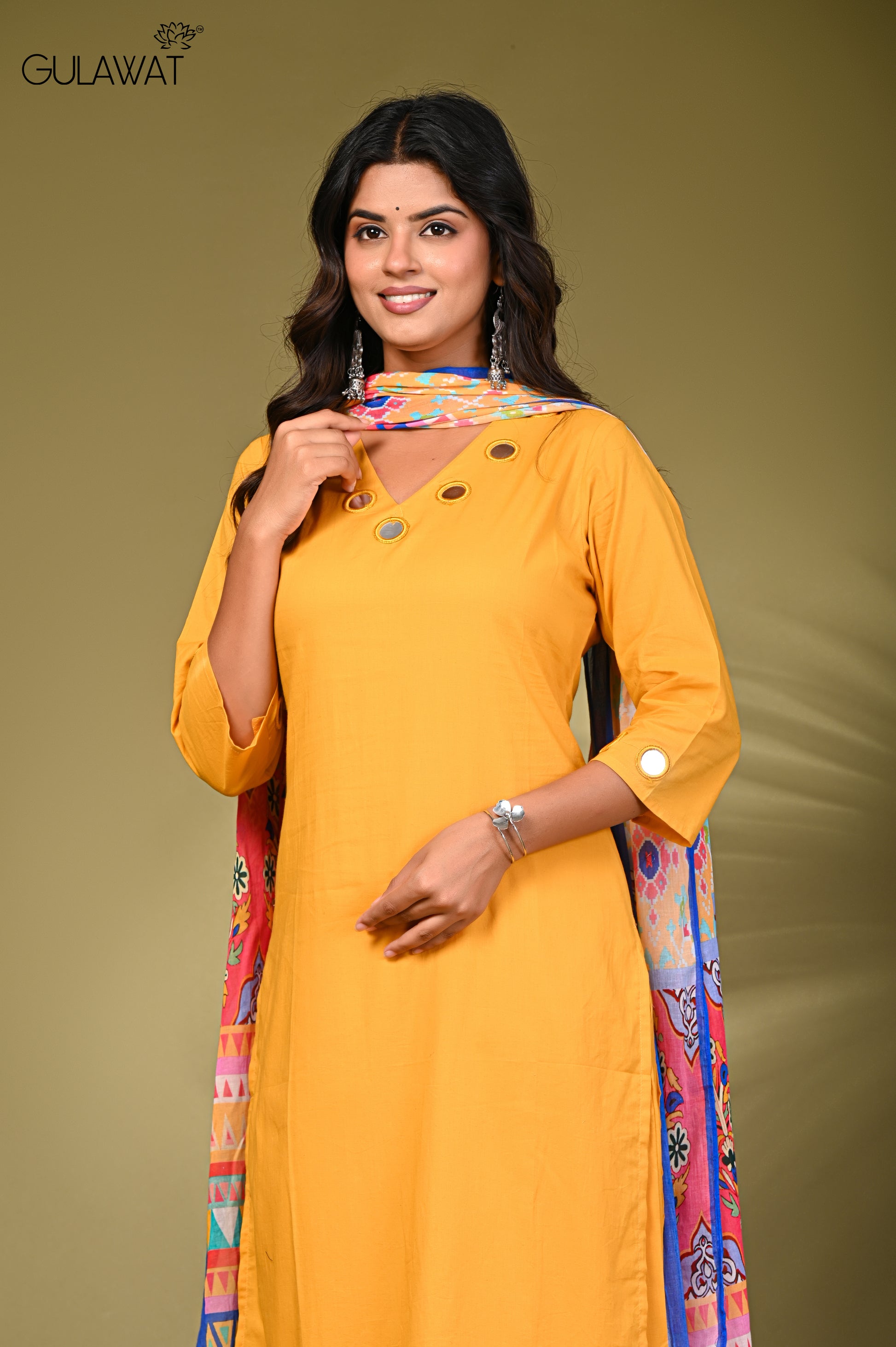 ★Style: Straight Kurta with mirror work neckline, straight pant and dupatta