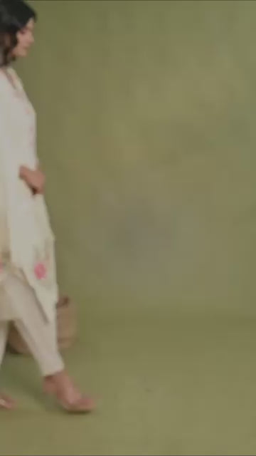 Elevate your style with this exquisite 3-piece set from Gulawat, featuring a beautifully embroidered. Crafted from 100% Pure cotton, this set showcases intricate embroidery and thread work, blending the elegance of traditional and Floral 3D